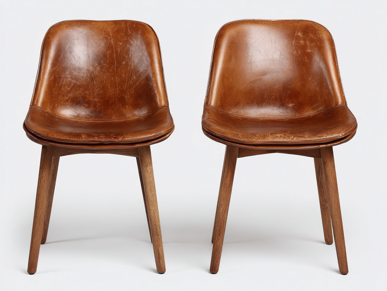 Assise et dossier revêtus de cuir de couleur marron, présentant un aspect authentique et chaleureux. Structure en bois assurant une bonne stabilité et une utilisation fiable au quotidien.