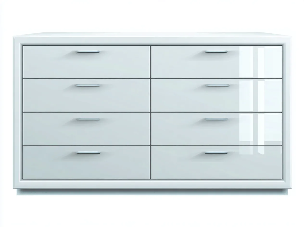 Cette commode au design moderne offre une grande capacité de rangement tout en conservant une esthétique épurée. Elle s'intègre facilement dans une chambre ou un salon grâce à ses lignes droites et son aspect lumineux.