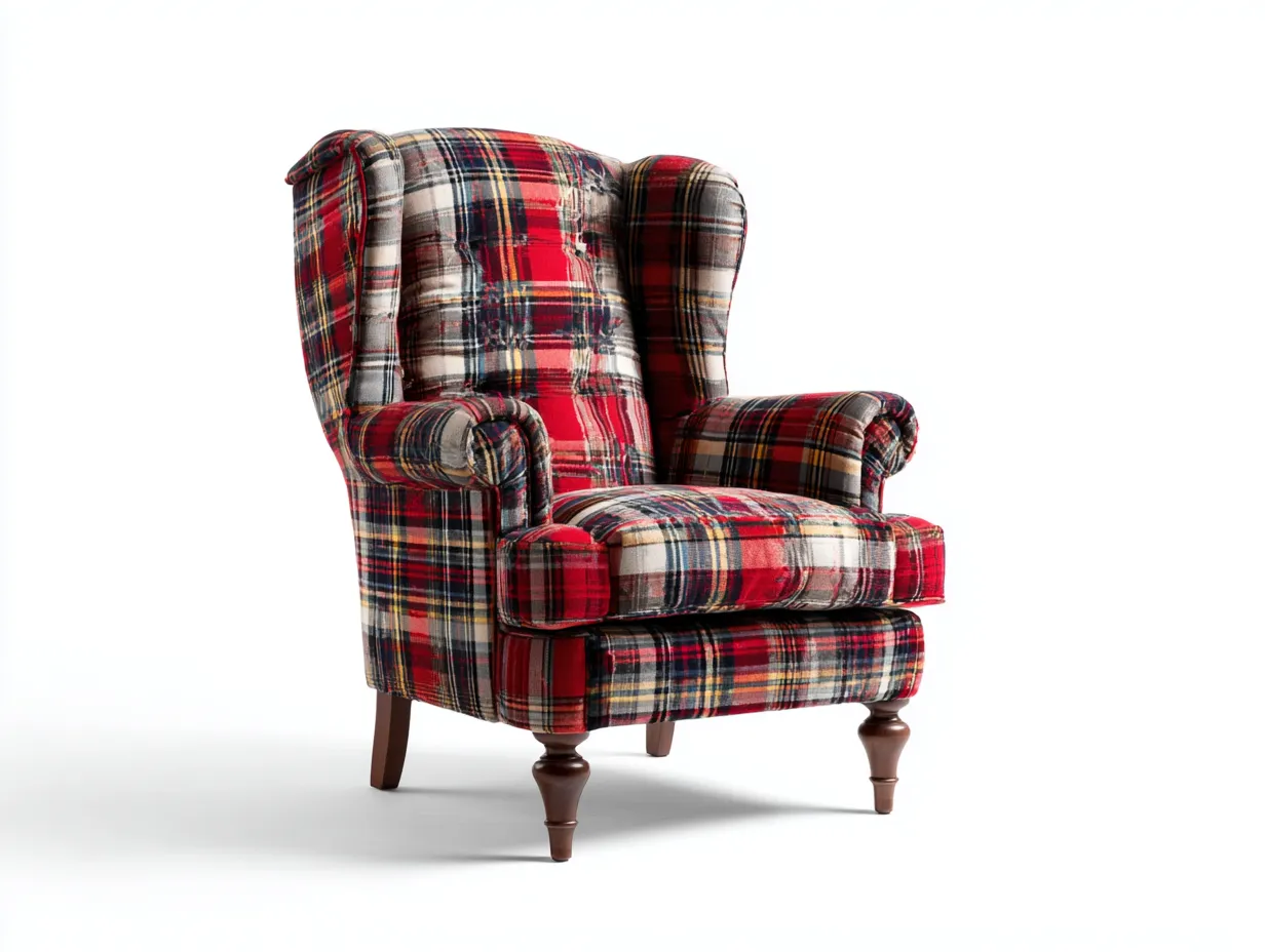 Fauteuil à oreilles conçu pour offrir une assise confortable et enveloppante dans le salon, le bureau ou l'espace détente. Son revêtement à motifs apporte une touche décorative affirmée et crée une atmosphère chaleureuse.