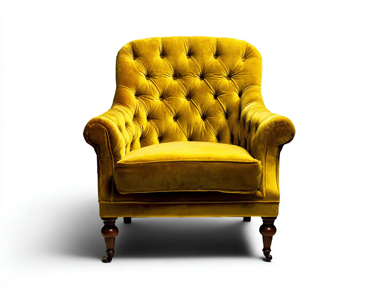 Ce fauteuil capitonné en tissu velours se distingue par son allure classique et son assise accueillante. Il est conçu pour créer un espace de détente confortable dans un salon, une chambre ou un coin lecture.
